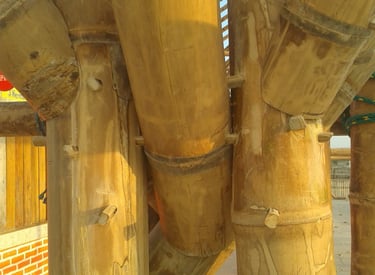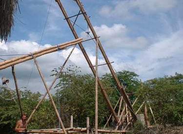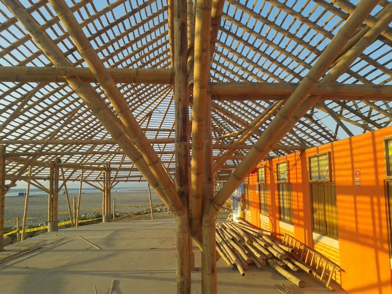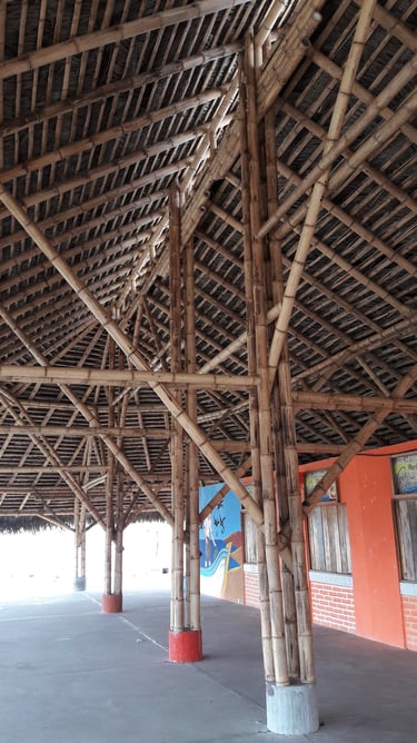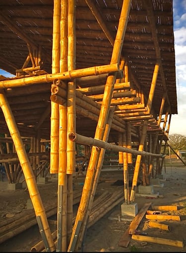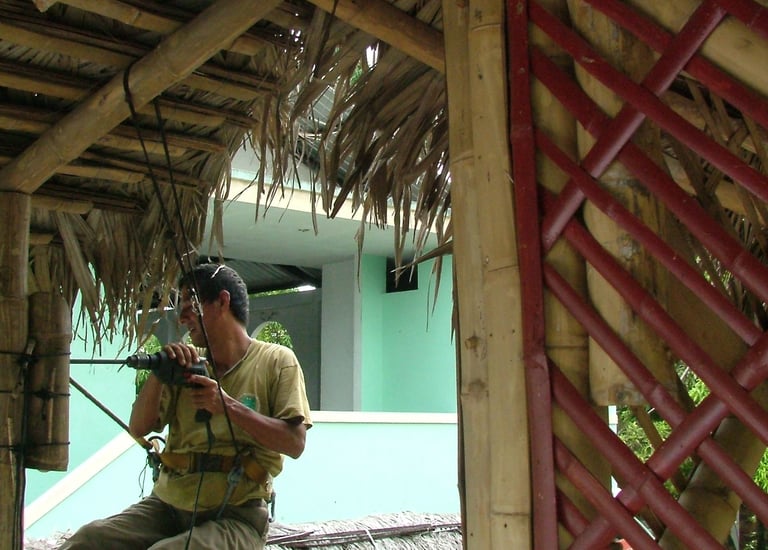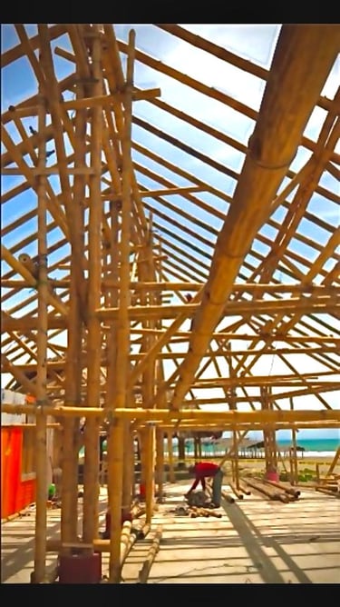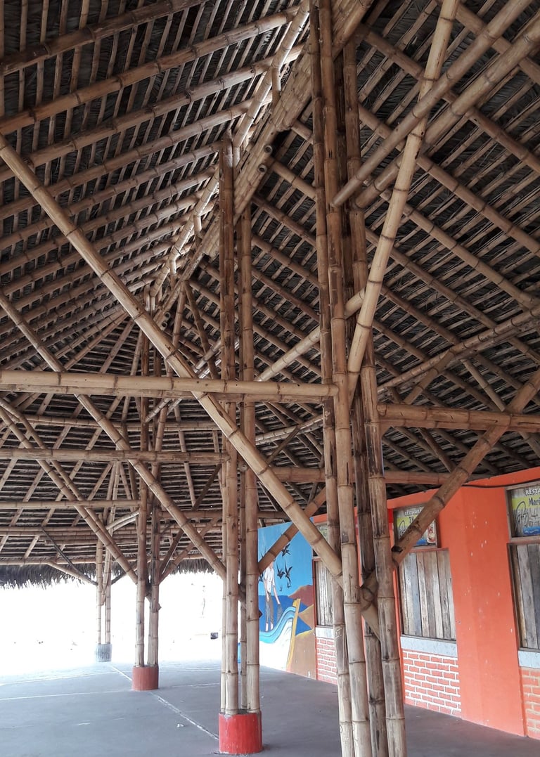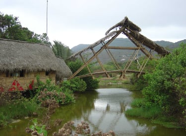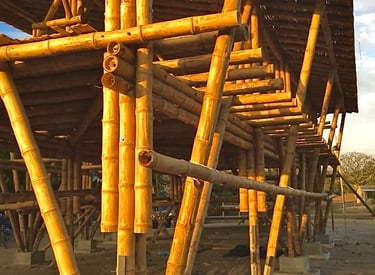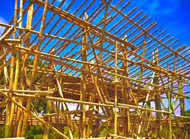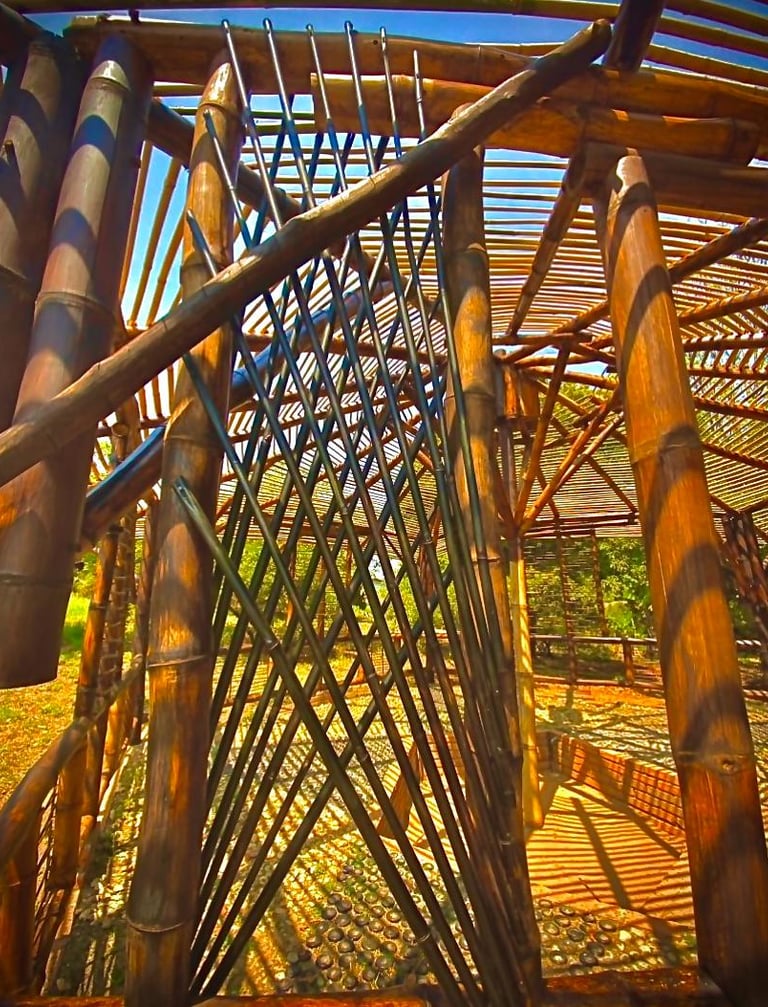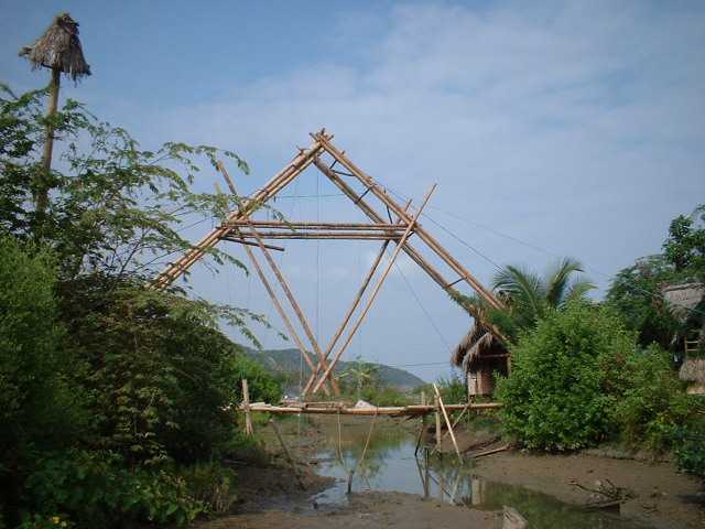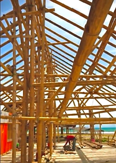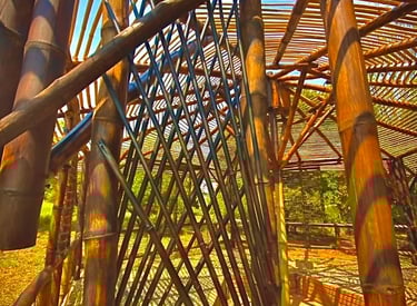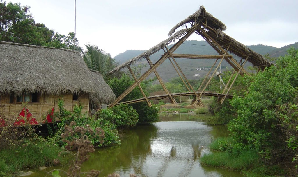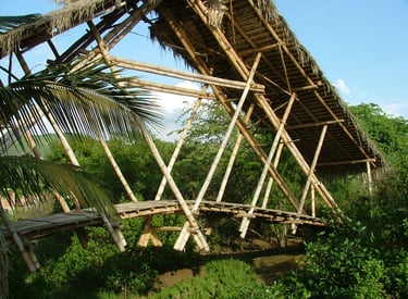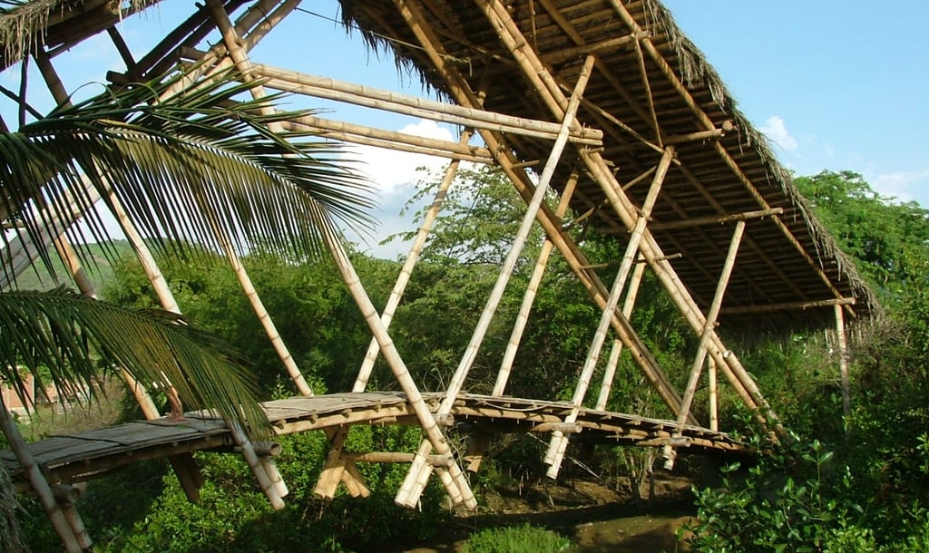 Pousada com estrutura em bambu.