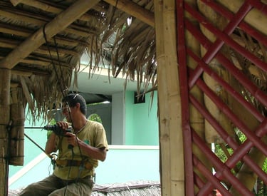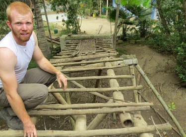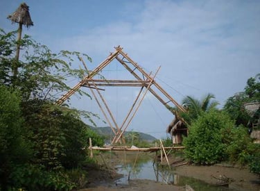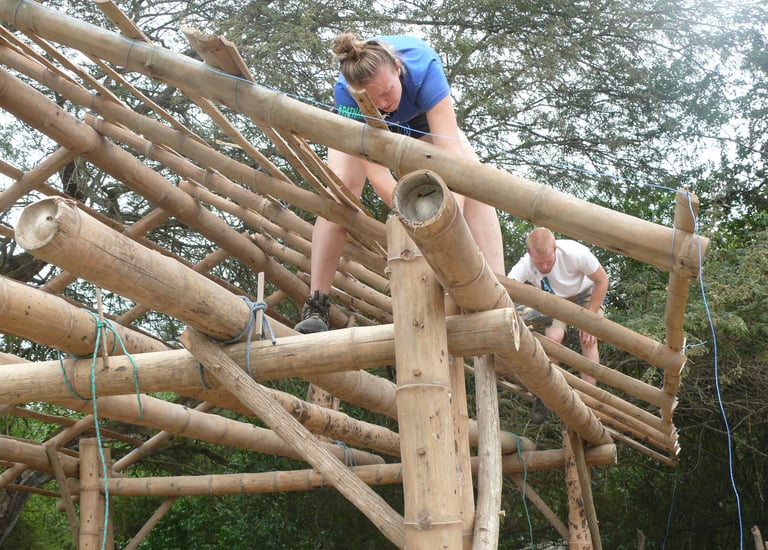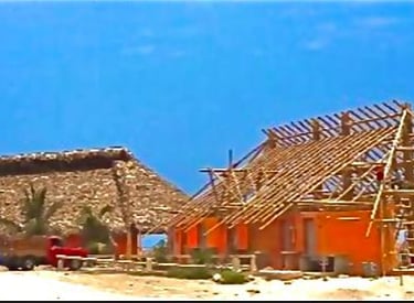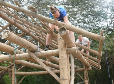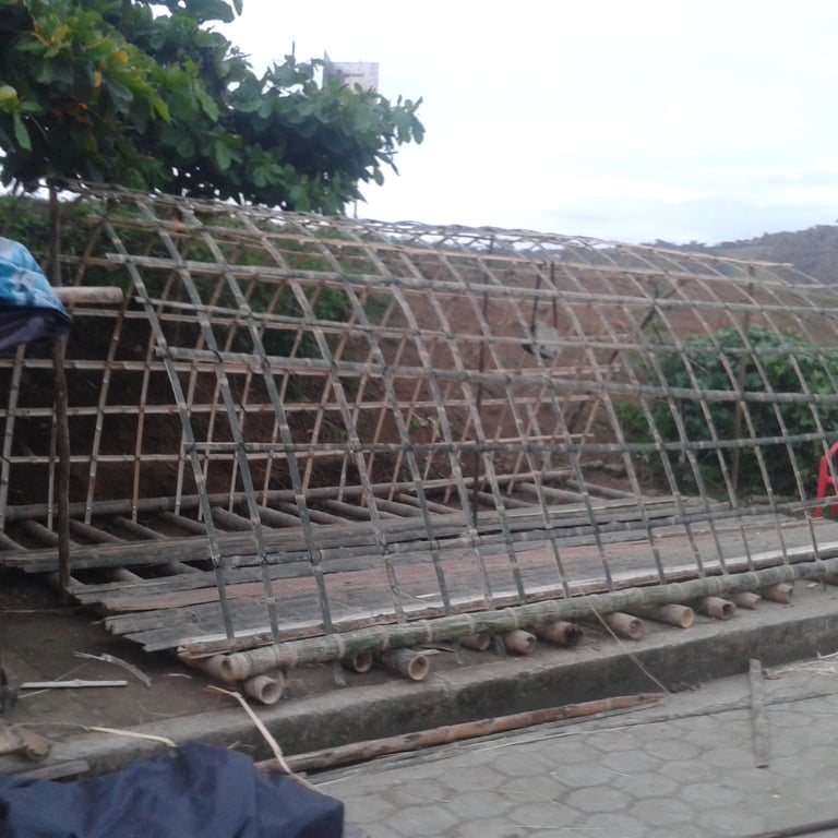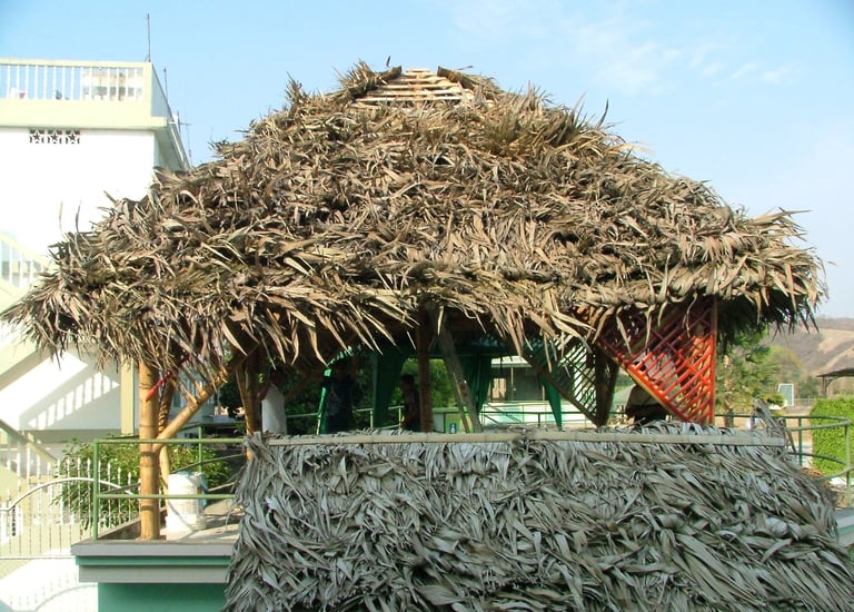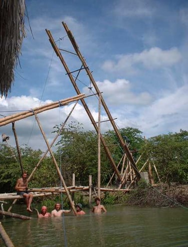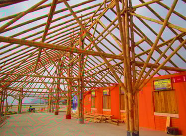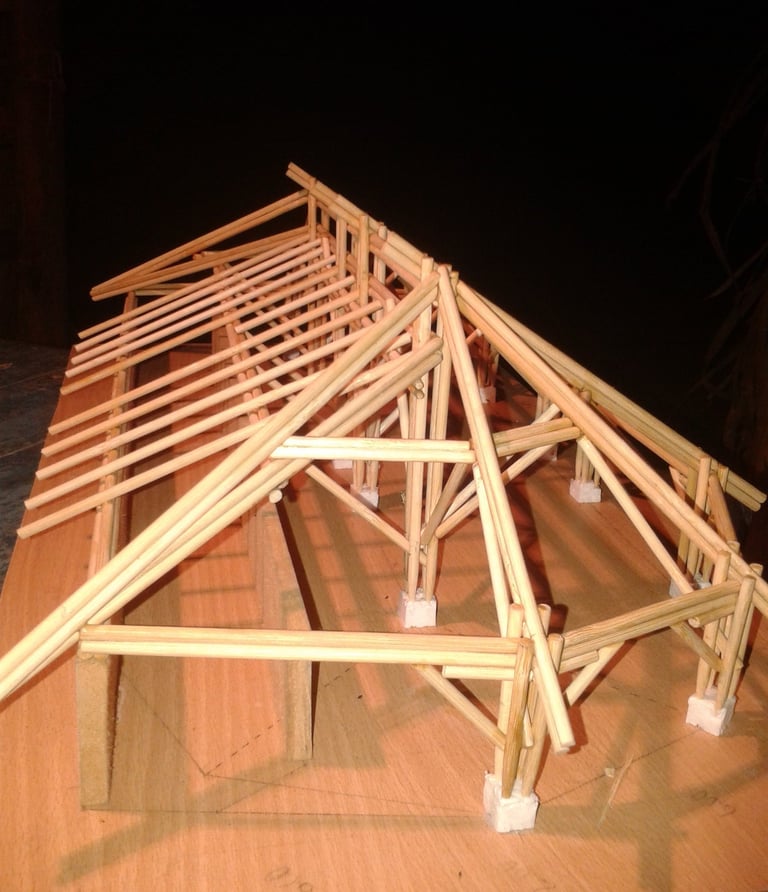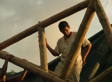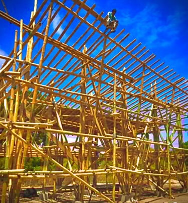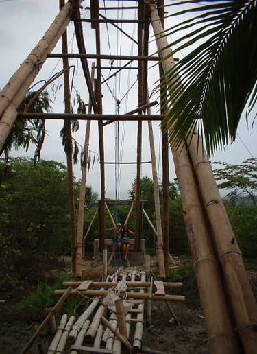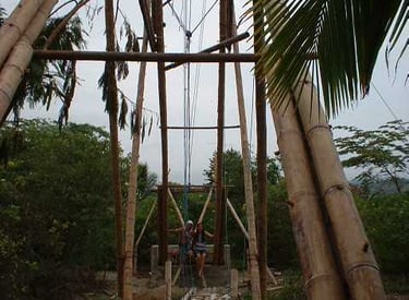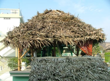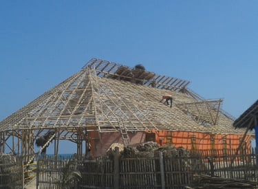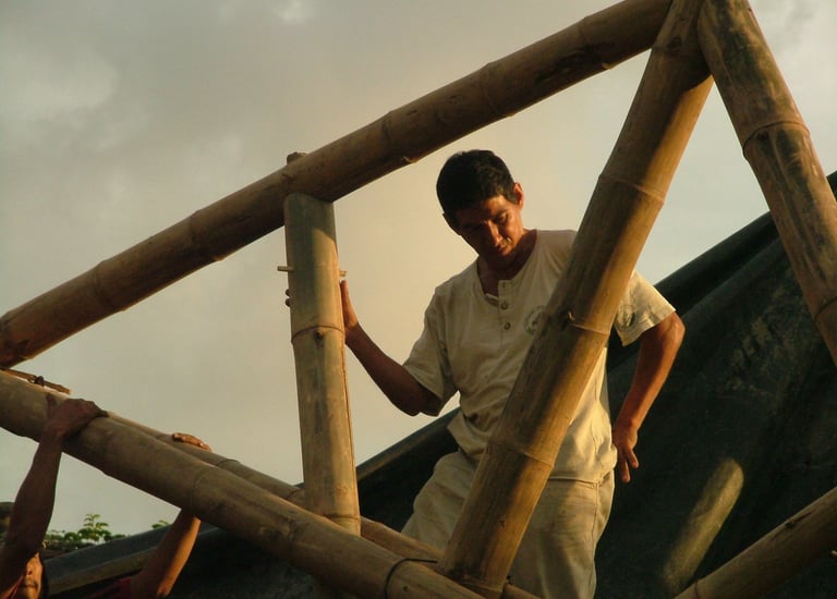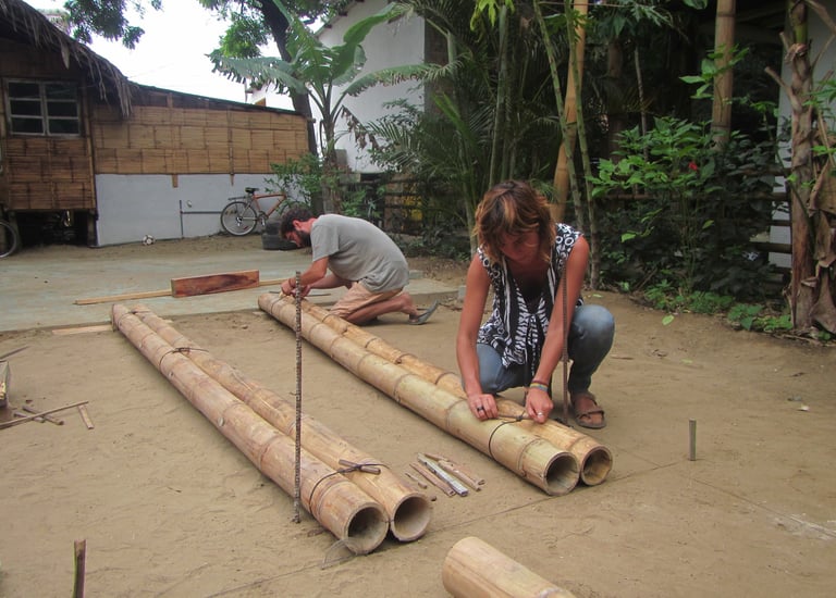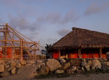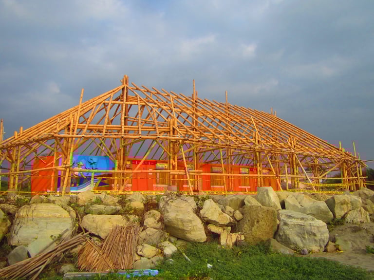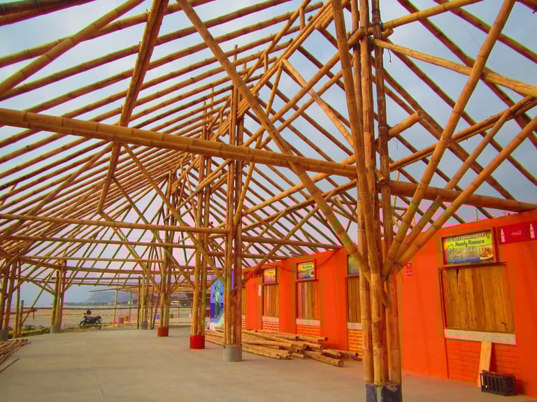 Pousada com estrutura em bambu.