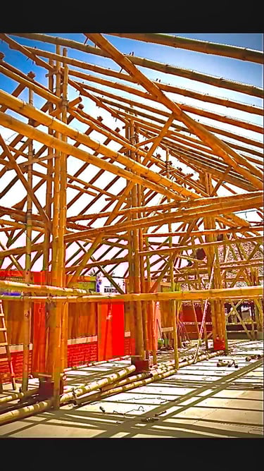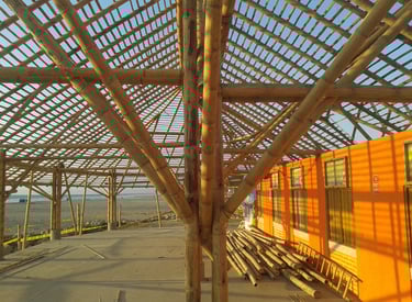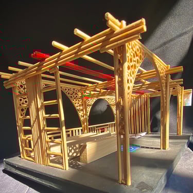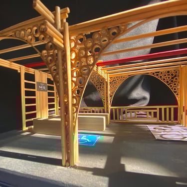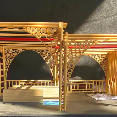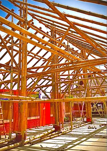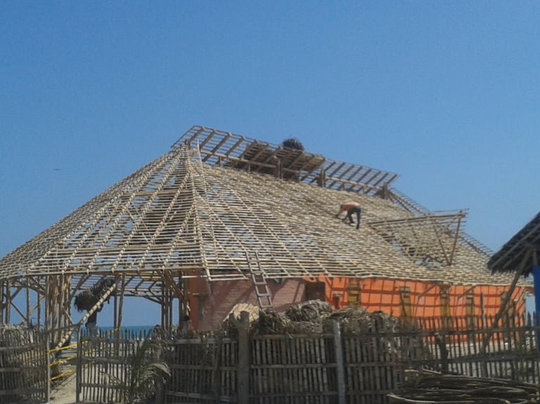 Espaço de eventos com cobertura em bambu.