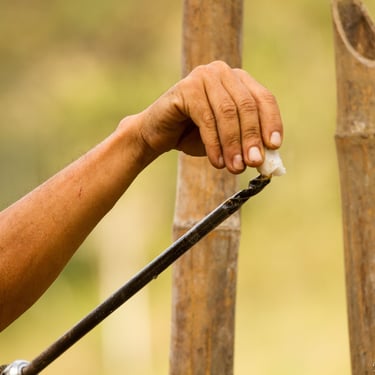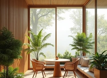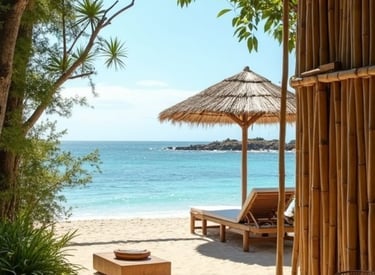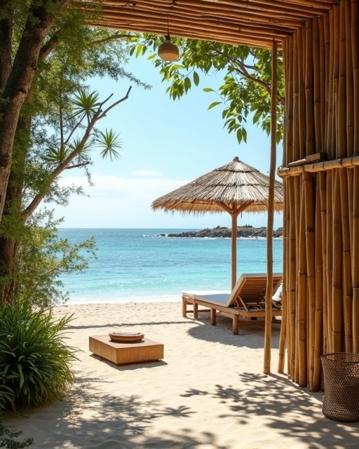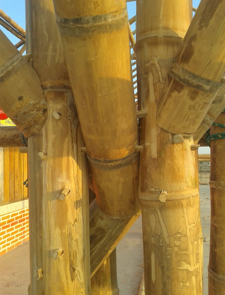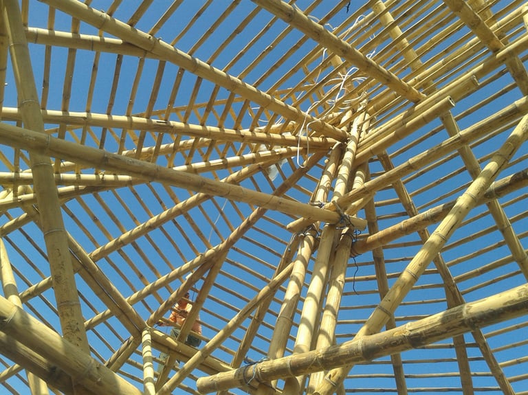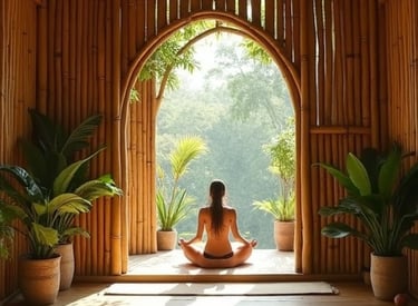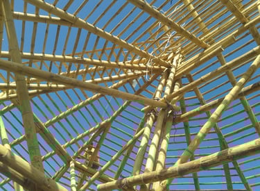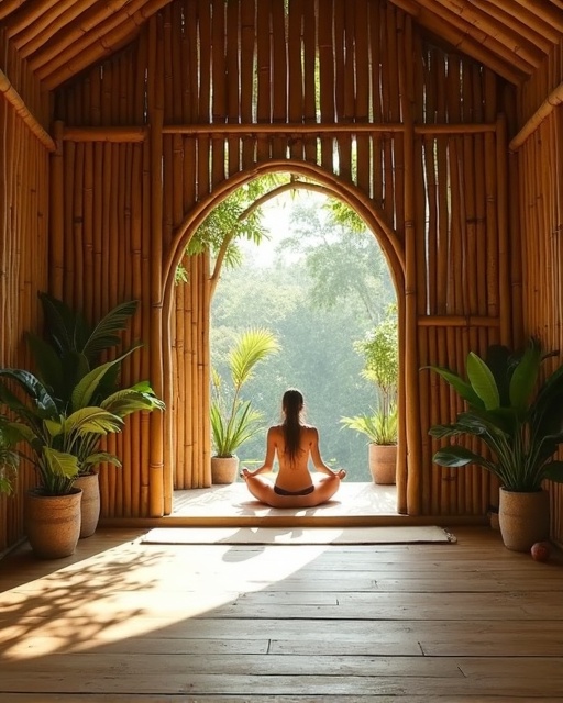 Espaço de bem-estar com estrutura em bambu.