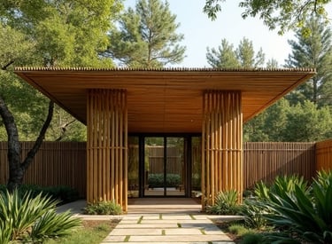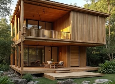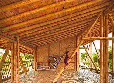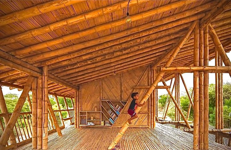 Residência com estrutura completa em bambu, integrando design moderno e sustentabilidade.