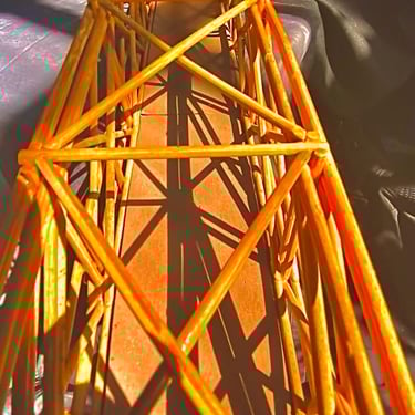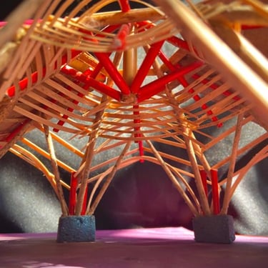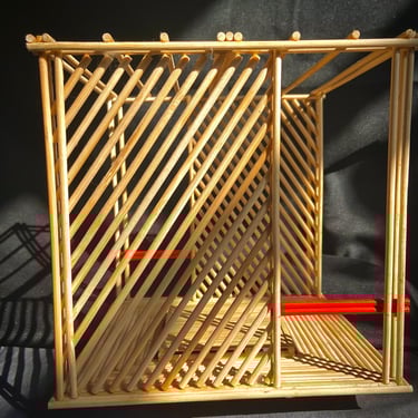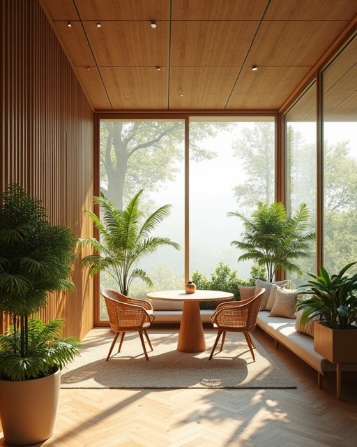 Espaço de trabalho colaborativo com divisórias em bambu.