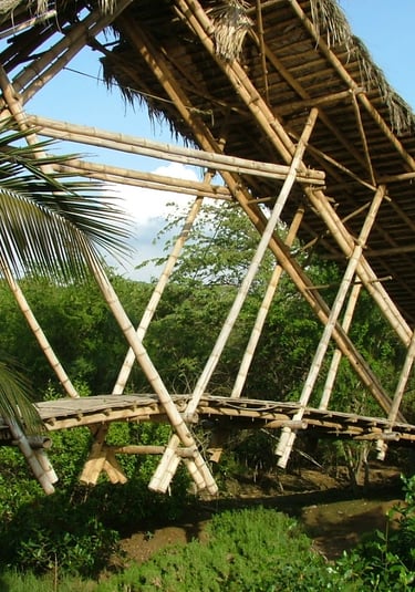 Transformamos o bambu e a madeira em estruturas duradouras que respiram com a natureza